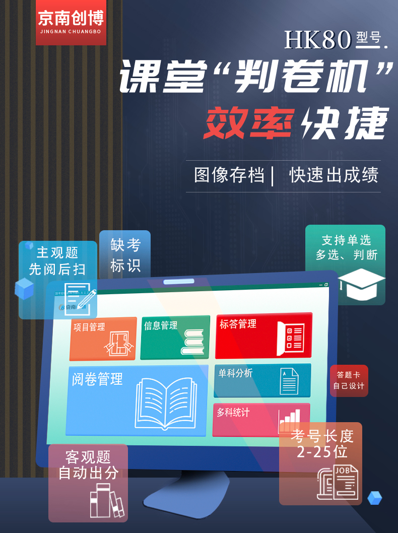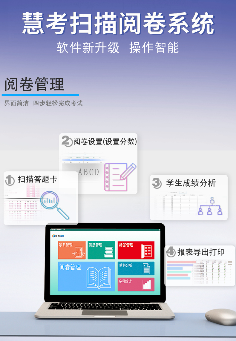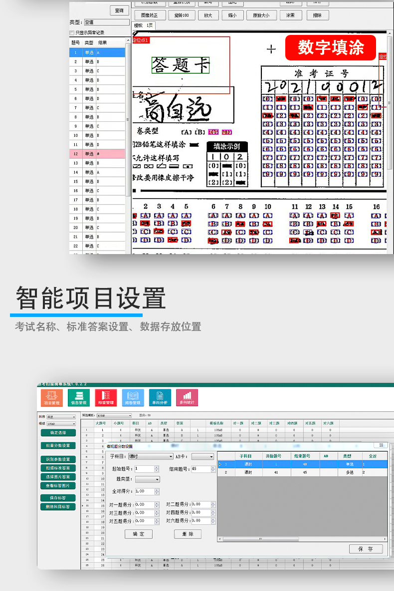 21、*支持雙面識別答題卡,支持AB卡識別,支持缺考、違紀(jì)、主觀分