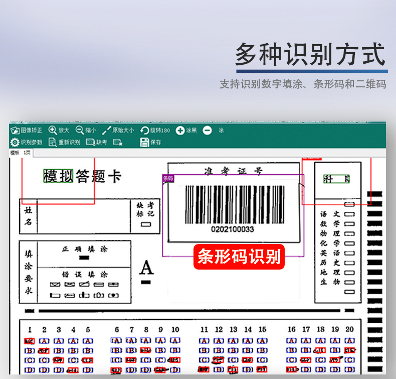 9、*支持填涂考號,支持條形碼、二維碼識別學(xué)生信息